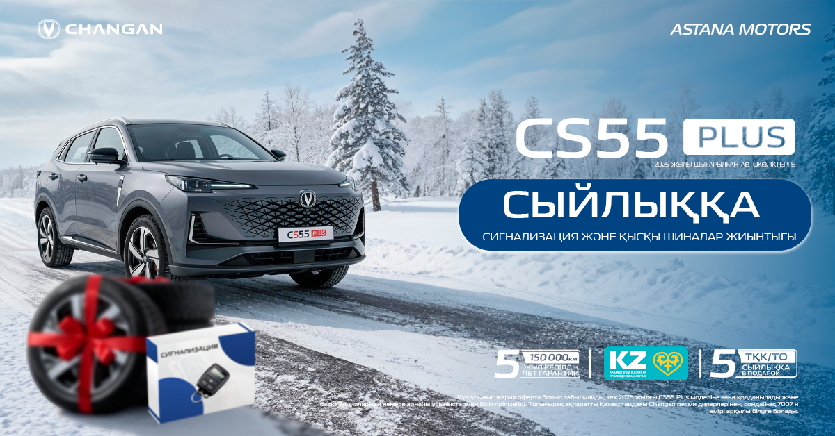 Осы бағдарлама аясында Changan CS55 Plus 2025 жылғы автомобильді сатып алғанда клиенттерге сигнализация және қысқы дөңгелектердің жинағы орнатумен — сыйлыққа беріледі.